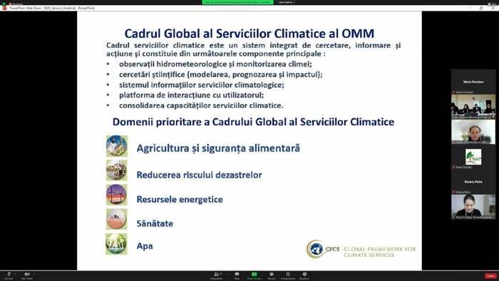 Serviciul Hidrometeorologic de Stat informează despre organizarea, în parteneriat cu PNUD Moldova, a atelierului de lucru consultativ privind direcțiile strategice în dezvoltarea serviciilor climatice în Republica Moldova. Evenimentul ce s-a desfasurat la inceputul lunii decembrie, a fost organizat în cadrul proiectului „PNA-2: Promovarea procesului național de planificare a adaptării la schimbările climatice în Republica Moldova”, finanțat de către Fondul Verde pentru Climă, care are drept obiectiv reducerea riscurilor climatice pe întreg teritoriul țării noastre, prin consolidarea capacităților instituționale și tehnice privind planificarea și programarea adaptării la schimbările climatice. În cadrul evenimentului au fost prezentate serviciile curente furnizate de către Serviciul Hidrometeorologic de Stat, precum și hazardele care afectează sectoarele naționale. De asemenea au fost purtate discuții privind serviciile curente, inclusiv din surse alternative utilizate de sectoarele cheie și de alți utilizatori și necesitățile acestora, dar și prezentarea potențialelor servicii care vor fi furnizate de SHS și provocările privind livrarea datelor suplimentare. În acest context, Serviciul Hidrometeorologic de Stat multumeste tuturor participantilor pentu colaborare si implicare in cadrul atelierului.