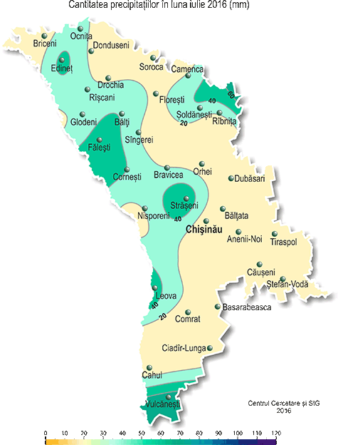 Cantitatea precipitaţiilor în luna iulie 2016(mm).