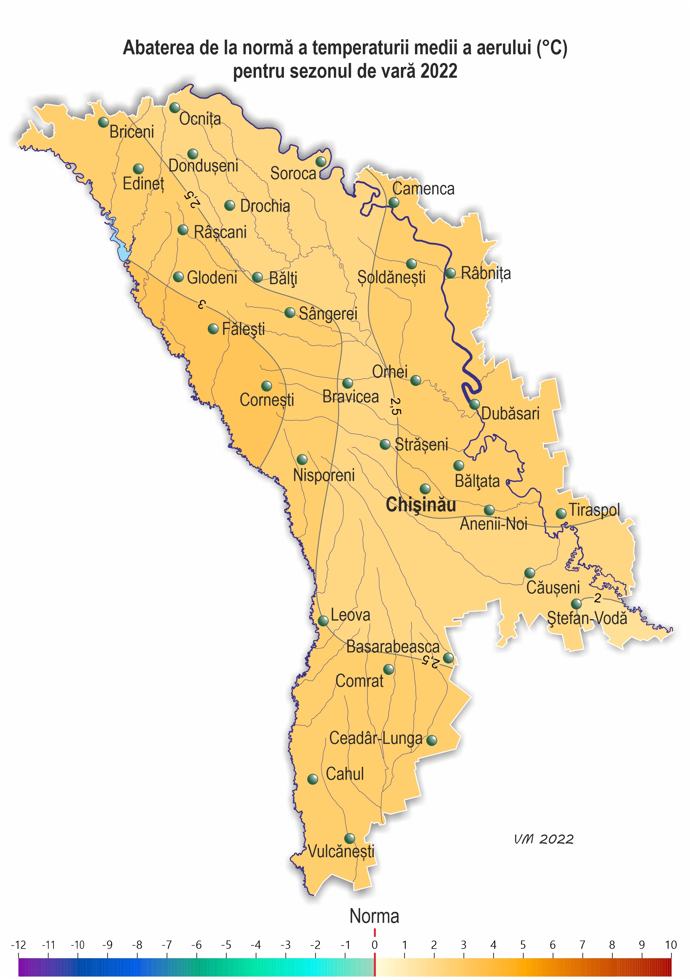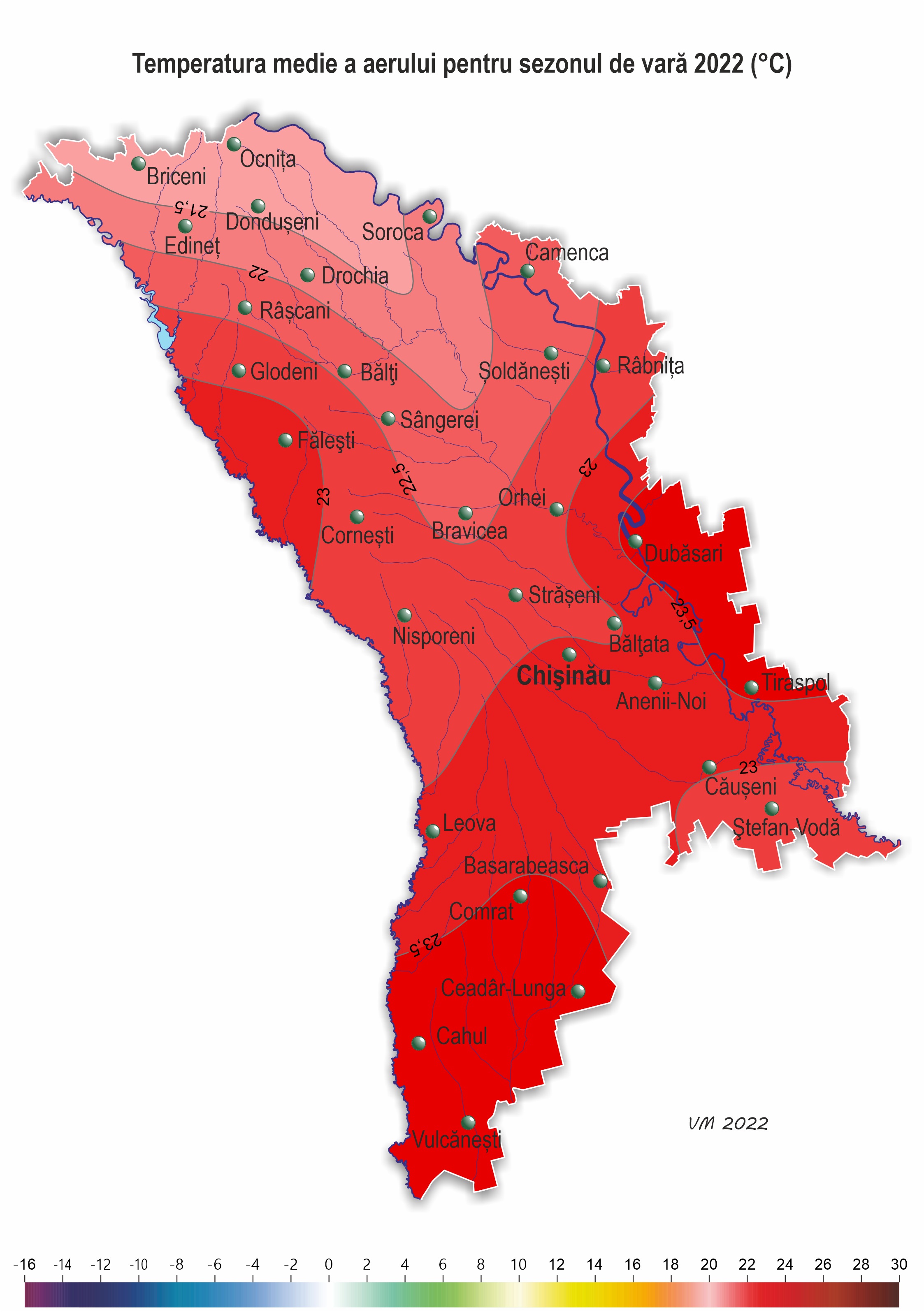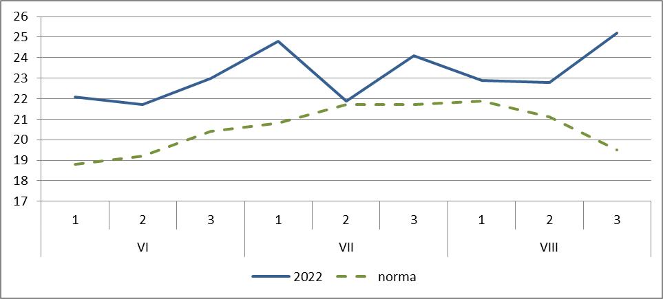 teritoriu +21,1..+23,7ºÑ, fiind cu 2,0-3,2ºÑ mai ridicată faţă de normă, ceea ce