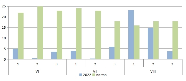 au constituit în fond 10-30 mm (10-50% din normă), izolat – 40-60 mm
