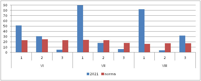 60-75 мм (60-80% нормы); в южных районах – в основном 60-65 мм (65-70% нормы),
