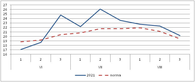 обусловливающий начало метеорологического лета, отмечался преимущественно 21-22 мая, лишь в северных районах – 3 июня, что по территории на 10 дней позже