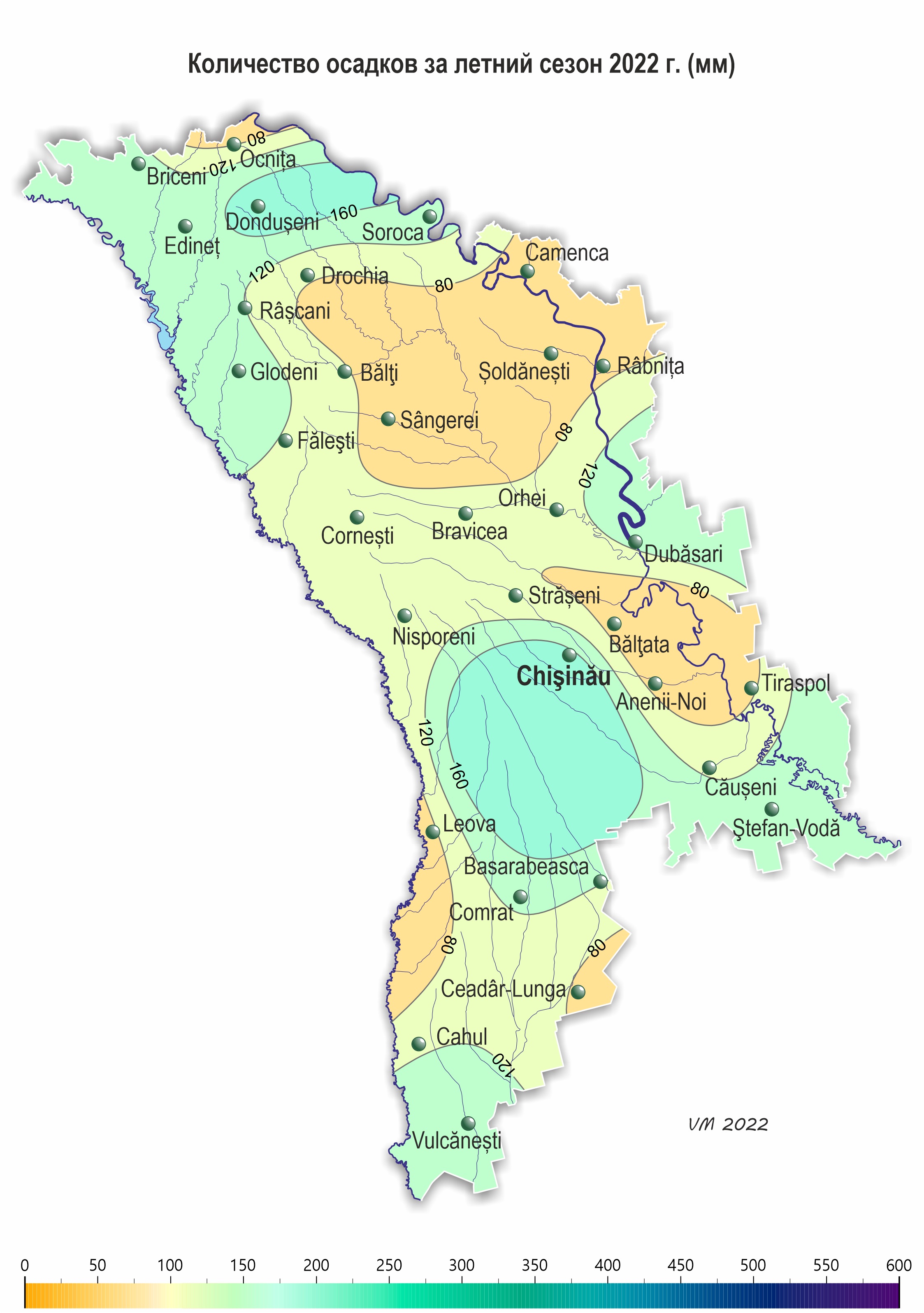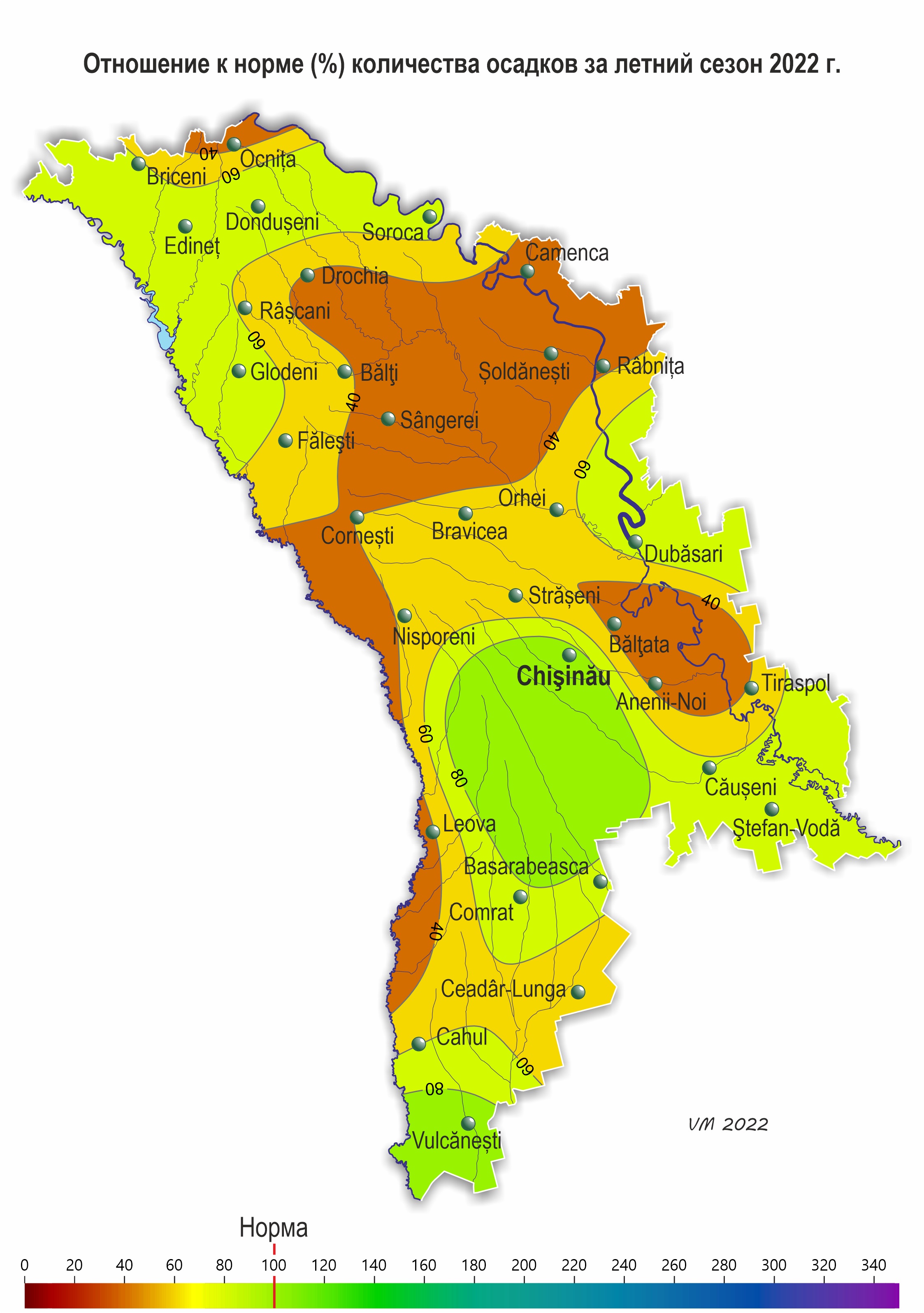 – в центральных районах – в основном 60-130 мм (35-70% нормы), лишь на МС Кишинэу