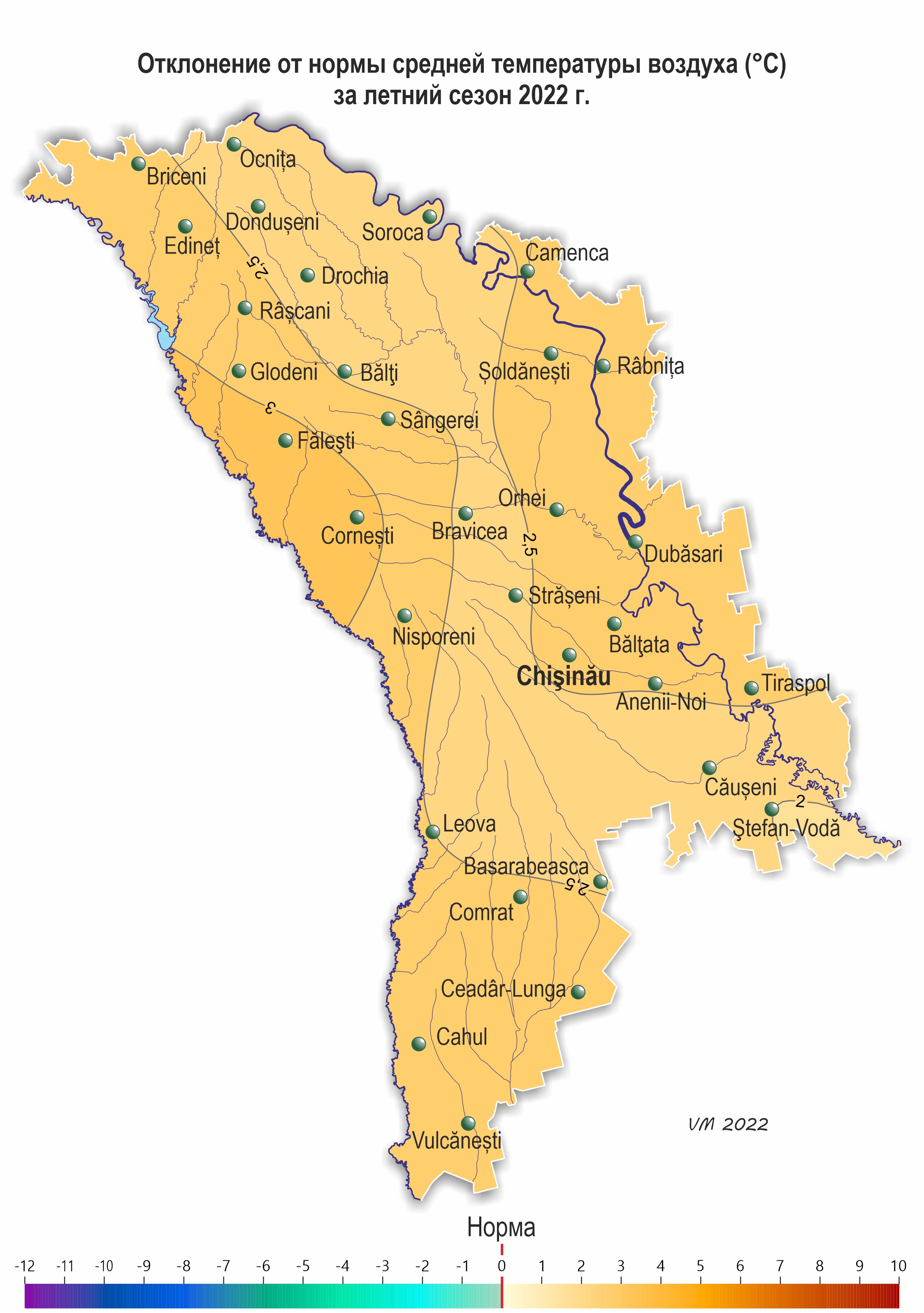(июль, МС Фэлешть, Корнешть, Дубэсарь), минимальная понижалась до +8ºС