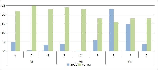 70-90 мм (75-90% нормы); в центральных районах – 5-30 мм (10-55% нормы), местами